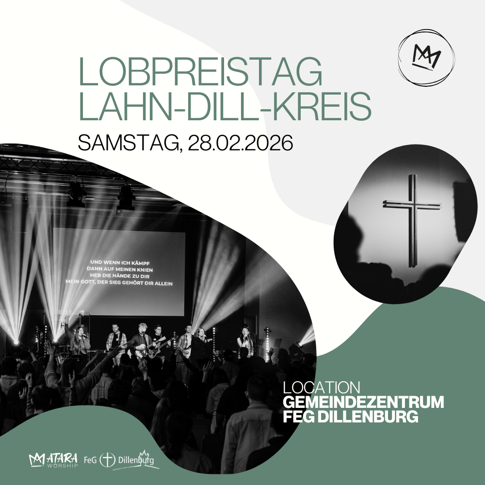 Wir veranstalten unseren zweiten Lobpreistag am 28.02.2026 in dem Gemeindezentrum FeG Dillenburg. Seid dabei und melde dich jetzt an.
